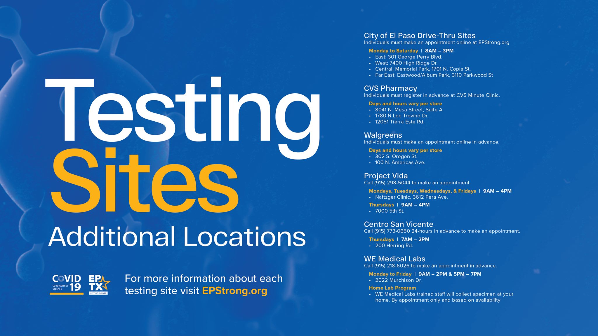 County of El Paso Covid 19 Testing Sites